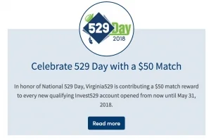 - Open a 529 plan with Virginia529 with $50 and get a $50 match