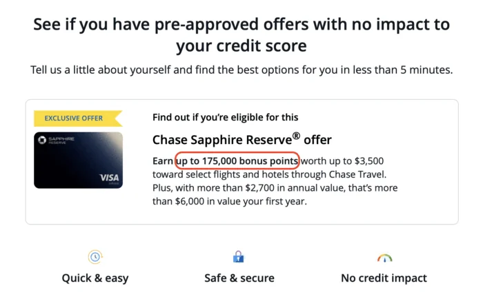In the past few days, many people have noticed that Chase's pre-approved offers for the Chase Sapphire Reserve (CSR) credit card include the phrase "Up To," as seen in this link: