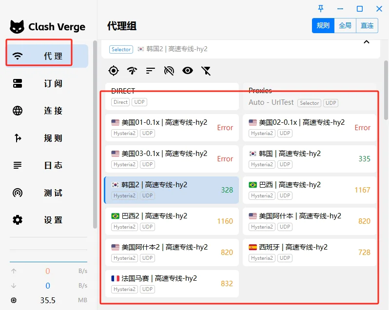 这里说明下,clash貌似仅支持hy2协议的节点如vless vmess等协议不支持,介意的可以使用V2ray但是V2ray不支持hy2协议