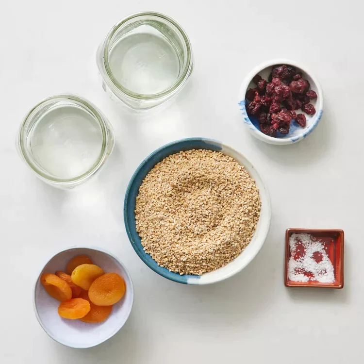 Combine 8 cups water, 2 cups oats, ⅓ cup dried cranberries, ⅓ cup dried apricots and ¼ teaspoon salt in a 5- or 6-quart slow cooker. Cover and cook on Low until the oats are tender and the porridge is creamy, 7 to 8 hours.