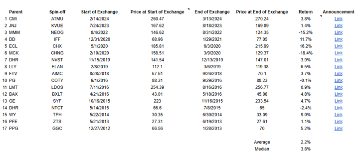 I looked back at the performance of the parent during similar transactions and found that it usually performs well (average: +2.2%; median: +3.8%)