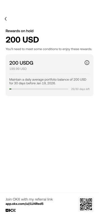 - Buy $200 or more of crypto (can be stablecoin like USDG) and hold the assets for at least 30 days within a 90-day period.