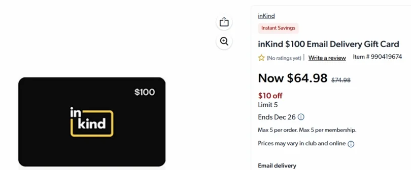 Samsclub.com: $100 inKind Giftcard For $64.99