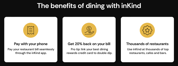 inKind, a growing dining rewards app, now offers a $15 discount on a $15 purchase for new users. The platform partners with restaurants to provide financing in exchange for “food and beverage credit,” allowing diners to pay their bills through the app while earning rewards.