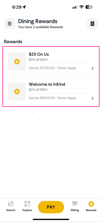 When you use inKind at participating restaurants, you receive 20% back in inKind Cash on eligible purchases. The network includes over 4,000 restaurants, ranging from local favorites to select chain locations like California Pizza Kitchen. It’s a simple way to save on dining while exploring new eateries in your area.