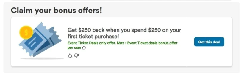 Capital One shopping is offering $250 back when you spend $250+ on your first ticket purchase
